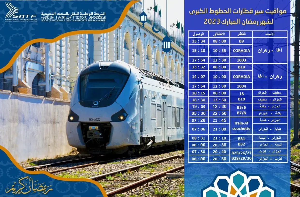 La société nationale des transports ferroviaires (SNTF) a annoncé aujourd’hui le changement des horaires de train durant le mois de ramadan. Et ce, via un communiqué rendu public sur sa page Facebook officielle. En effet, cette décision concerne les trains de grandes lignes. En d’autres termes, les lignes entre Alger et les autres wilayas.