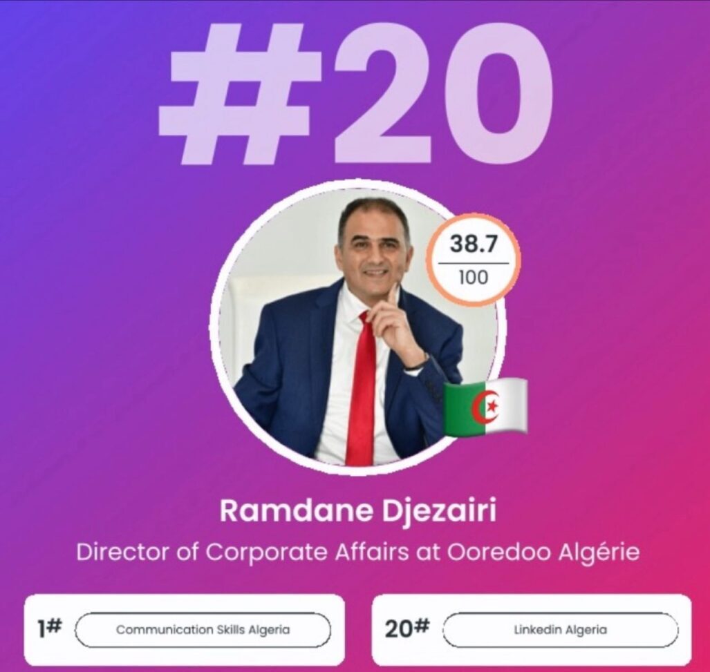 Avec plus de 3 millions d’utilisateurs Linkedin en Algérie, ce classement met en lumière les 100 profils les plus influents et engagés. Ramdane Djezairi se distingue particulièrement dans la catégorie Communication et culture d’entreprise, où il occupe la première place.