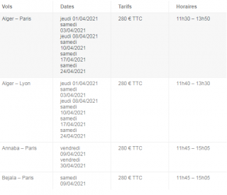 Les billets de vol, dont le dernier délai est le 30 Avril 2021, ont été mis en vente sur le site officiel d’ASL Airlines, avec pas moins de 15 vols incluant les villes algériennes et françaises.