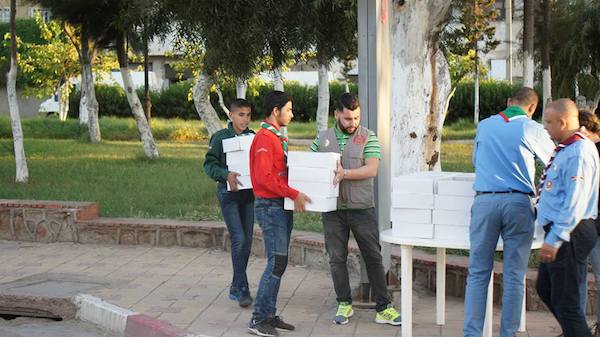 La mosquée toute proche annonce l’Iftar, il est temps de passer à table, sauf pour une partie des scouts qui attendront que tout le monde soit bien servi pour manger. À la fin du repas, il est l’heure du nettoyage, et tout le monde met la main à la pâte dans la joie et la bonne humeur.