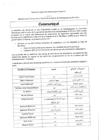 De nouveaux potentiels candidats aux élections présidentielles de 2019 ont retiré leur formulaire de candidature ! pour le moment, ils sont 61 à avoir retiré ce fameux document leur permettant d’accéder au scrutin d’avril prochain. Enfin, la course aux élections n’est pas encore fini pour ces 61 candidats qui devront trouver des soutiens avant d’accéder aux élections…