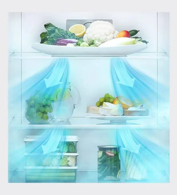 Outre ces fonctionnalités, le nouveau modèle de réfrigérateur de LG utilise le système Multi-Air Flow qui optimise la circulation de l’air frais dans l’ensemble de l’appareil. En effet, ce système maintient une température idéale afin de conserver vos aliments plus frais, plus longtemps. Des capteurs numériques surveillent l’intérieur du réfrigérateur en permanence tandis que des bouches d’aération, stratégiquement placées, ventilent du froid sur vos aliments pour préserver leur fraîcheur.