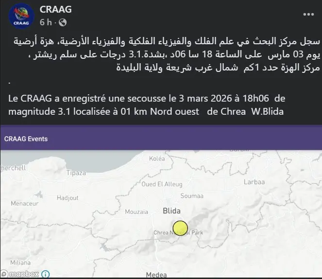 Ces secousses rappellent que l’Algérie est située dans une zone d’activité sismique modérée à soutenue. Les services spécialisés maintiennent une surveillance continue du territoire grâce à un réseau dense de stations de détection.