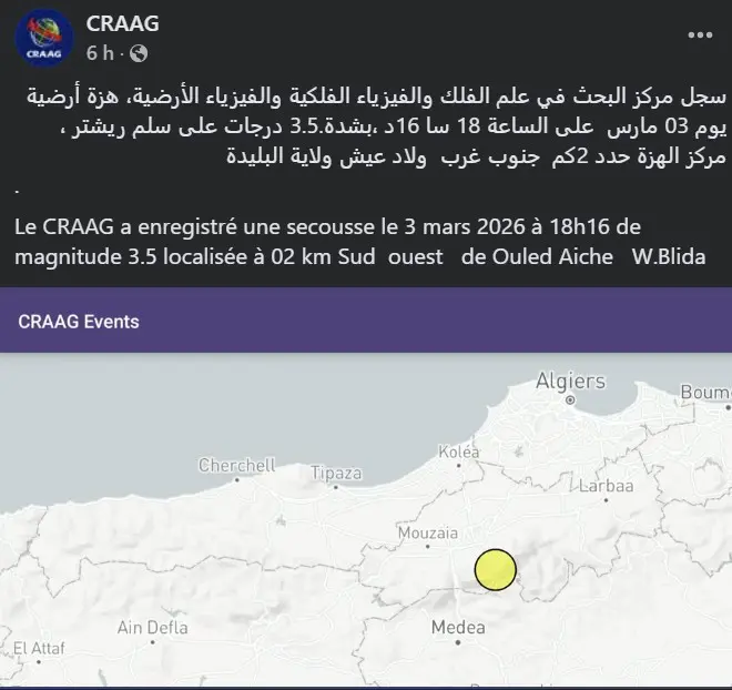 Ces secousses rappellent que l’Algérie est située dans une zone d’activité sismique modérée à soutenue. Les services spécialisés maintiennent une surveillance continue du territoire grâce à un réseau dense de stations de détection.