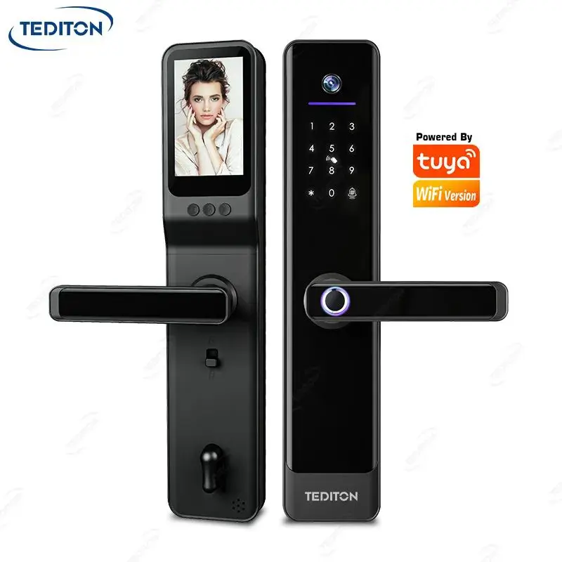 Découvrez la commodité multilingue et la communication avancée avec la serrure de porte intelligente Tediton F7 alimentée par Tuya Intercom