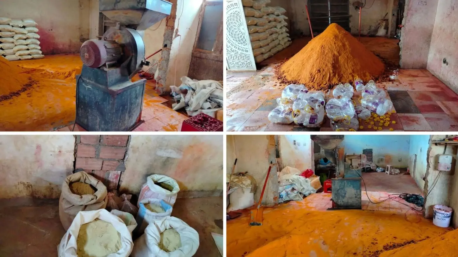 Lors de la perquisition, les forces de l’ordre ont mis la main sur une quantité considérable de marchandises. Plus de 25 quintaux d’épices de différents types, déjà préparées pour l’emballage et la commercialisation, ont été saisis. Des machines et divers équipements utilisés dans la fabrication, le mélange et la falsification des produits ont également été confisqués, révélant l’ampleur de cette activité illégale.