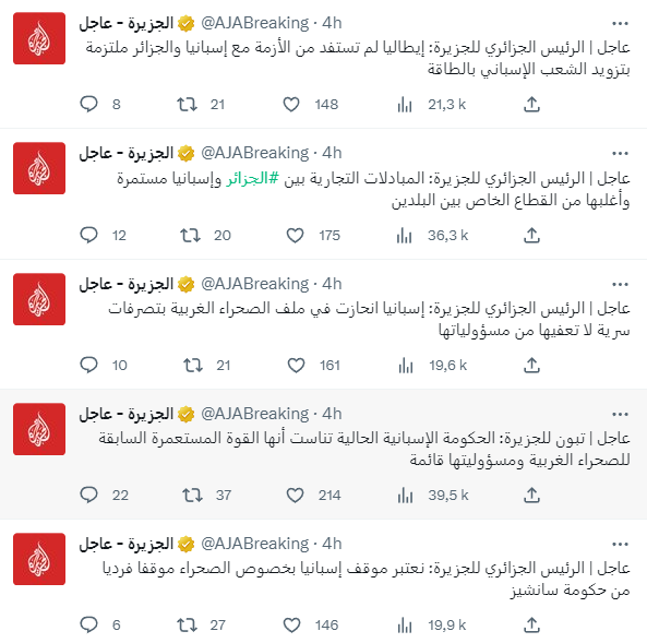 L’un des thèmes principaux de l’entrevue du président algérien avec la chaîne qatarienne a été la crise diplomatique entre l’Algérie et l’Espagne qui dure depuis le mois de juin de l’année dernière (2022).