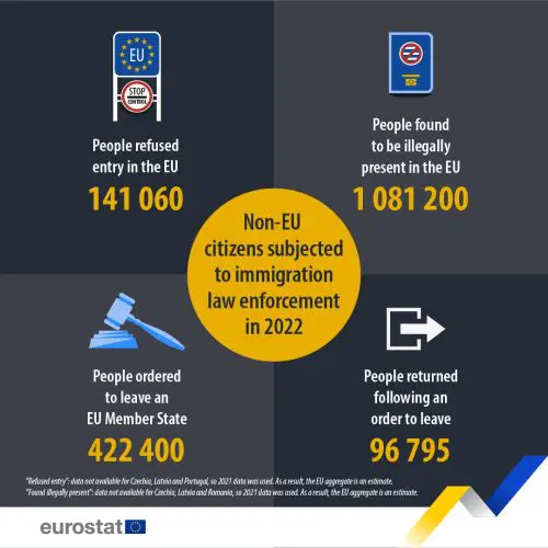 Les chiffres récents publiés par l’Office européen de statistique, Eurostat, mettent en lumière une forte croissance des ordres d’expulsion concernant les immigrants en situation irrégulière en Europe, avec des nombres marquants pour l’année 2022.