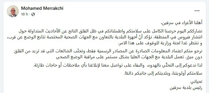 Il a précisé que les récents décès dans la commune concernaient des personnes qui souffraient de maladies chroniques depuis longtemps, et que ces décès n’avaient aucun lien avec un quelconque virus mentionné par certains sites.