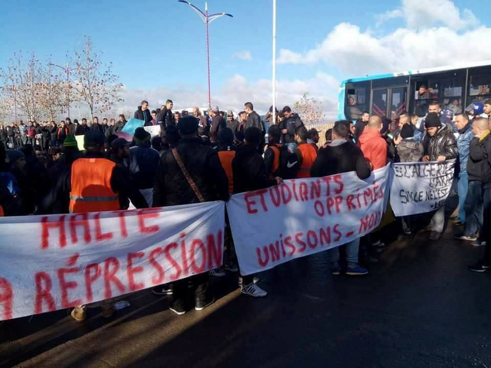 “Une nouvelle marche des étudiants de l’université de Bouira a été brutalement empêchée ce lundi 18 décembre par les forces de l’ordre. Rassemblés à l’extérieur de la gare routière de la ville, des centaines d’étudiants qui scandaient des slogans en faveur de tamazight ont été dispersés d’une manière brutale par les forces de l’ordre. Les manifestants étaient munis de banderoles et autres pancartes” précise le média.