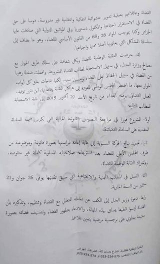 Dans le communiqué, les magistrats ont accusé Zeghmati de « transgresser les prérogatives du Conseil supérieur de la Magistrature pour composer seul la liste du mouvement annuel des magistrats dans des chambres verrouillées ».