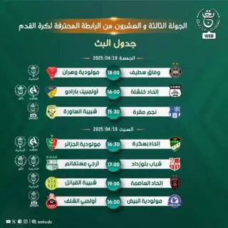 Demain, vendredi, il y aura trois matchs au menu. D’abord, NC Magra-JS Saoura (15h30) qui sera diffusé sur la chaine WEB de l’EPTV. Ensuite, il y aura USM Khenchela-Paradou AC (16h) qui sera retransmis sur les deux chaines Canal Algérie et la Terrestre.