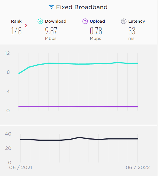 Afin de donner un ordre de grandeur, il faut savoir que la moyenne mondiale pour le débit de l’Internet mobile est de 31 Mb/s ; et pour l’Internet fixe, elle est de 66 Mb/s.