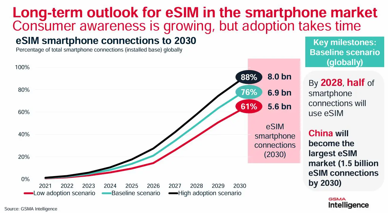 L’essor des eSIM, ces cartes virtuelles intégrées aux appareils, s’inscrit dans une révolution technologique en marche. D’après la GSMA, la production d’appareils compatibles a été multipliée par dix au cours de ces cinq dernières années.
