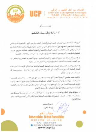 Le communiqué officiel publié par le parti, et envoyé à note rédaction confirme les propos de Zoubida Assoul sur l’initiative de la plateforme, mais également, démontre la position du parti envers le prolongement du cinquième mandat et la période de transition. » Je ne peux pas imaginer une transition qui pourrait se faire avec le même système qui a été a la base de tout ce que nous vivons.«